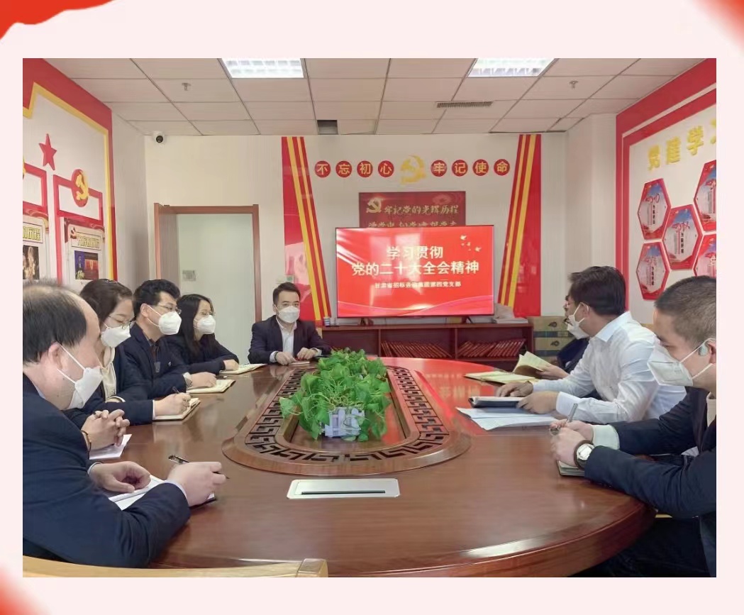 黨的二十大勝利召開以來,甘肅省招標咨詢集團有限責任公司黨委高度重視,將學習宣傳貫徹黨的二十大精神作為當前和今后一個時期的首要政治任務,通過多形式、全覆蓋的方式,積極抓好貫徹落實,持續(xù)推動黨的二十大精神轉化為加快各項工作高質量發(fā)展的強大動力,努力促使黨的二十大精神在招標咨詢集團迅速落地生根、開花結果。