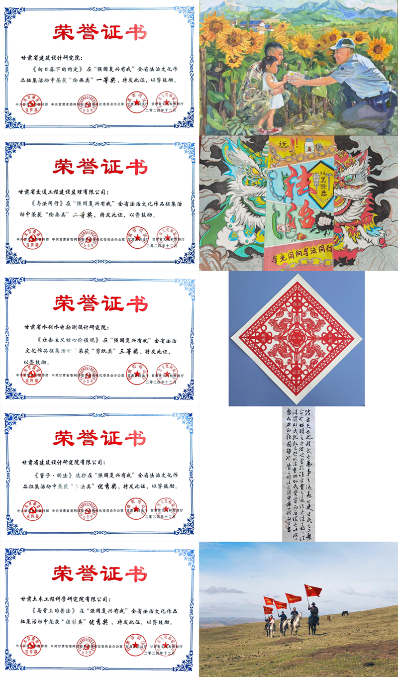 近日,從省委宣傳部等多部門聯(lián)合主辦的“強(qiáng)國復(fù)興有我”全省法治文化作品征集展播活動(dòng)傳來喜訊,甘肅工程咨詢集團(tuán)在此次活動(dòng)中斬獲佳績。