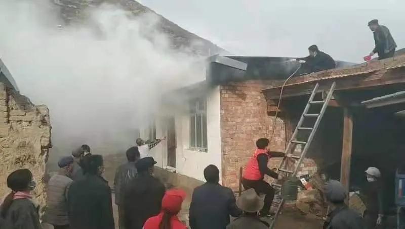 10月30日下午3點,交通監(jiān)理公司負責幫扶的臨潭縣洮濱鎮(zhèn)馬旦溝村一戶村民家中突然冒出滾滾濃煙,火光在濃煙中忽隱忽現(xiàn)。著火是一座磚木結構彩鋼屋頂?shù)男路浚饛奈蓓敓?,越燒越旺。著火的房屋旁邊堆放著多年的老柴火,干燥異常,一絲火星就能點燃,而與著火點緊鄰著的就是布局緊密的鄉(xiāng)親們的房屋,再往外圍則緊接著山林,如果火勢蔓延,后果將不堪設想。