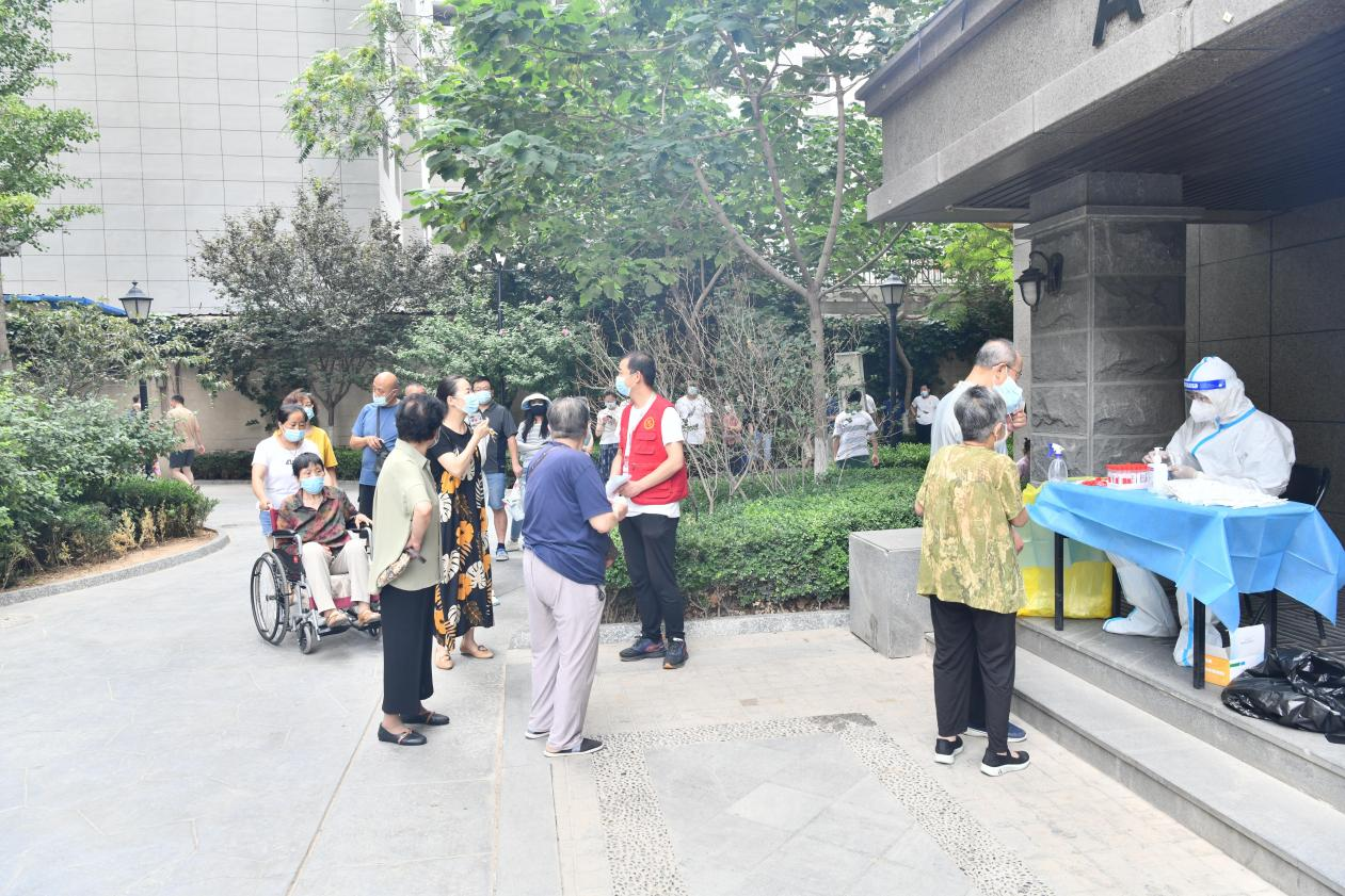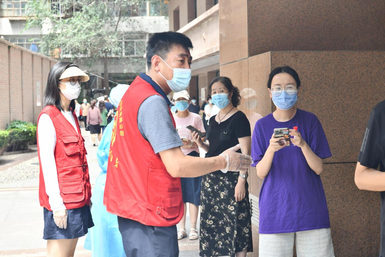 中午時分,志愿者們頂著38℃的高溫,穿梭在小區(qū)核酸檢測采集現(xiàn)場、小區(qū)出入口,按照核酸檢測要求,引導(dǎo)待測人員佩戴好口罩、保持安全距離、有序排隊。他們嗓子啞了也顧不上喝一口水,身上的衣服已不知被汗水浸濕了多少次,卻始終沒有一個人叫苦叫累,依然努力奮戰(zhàn)在核酸采樣第一線,用實際行動展示“奉獻(xiàn)、友愛、互助、進(jìn)步”的志愿精神,詮釋國企擔(dān)當(dāng)。