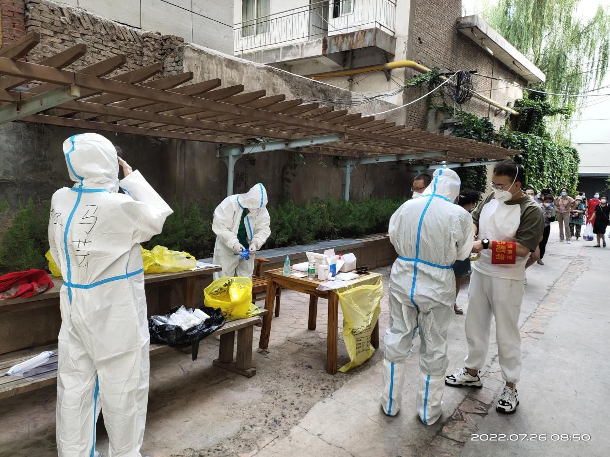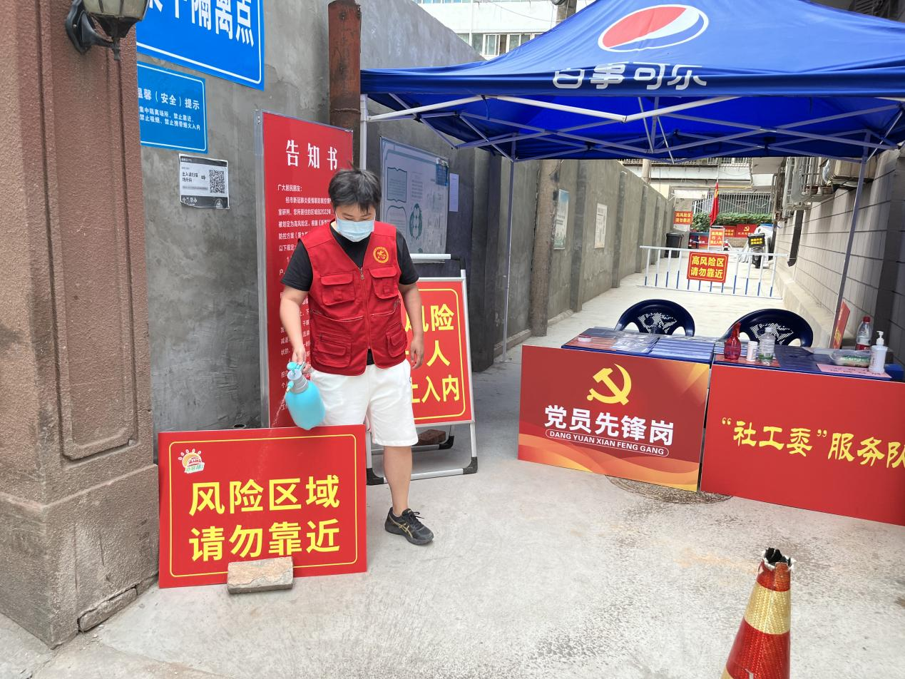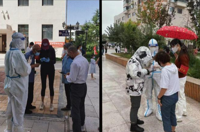 市政工程設計院工程師劉倩倩,主要負責所在小區(qū)的門崗值守及門崗巡查、核酸檢測維持秩序、分貼試管碼等系列工作。穿梭在各個工作點,協(xié)調問題和解決難題,她都游刃有余,一天下來,她的聲音早已經(jīng)沙啞,口罩也擋不住厚重的黑眼圈,但是她總是笑著說,“檢測不結束,我們不離崗,只要我守住了一個不起眼的崗位,就能守住病毒。雖然有點辛苦,但是心里踏實”。