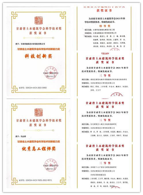 近日,從甘肅省建設(shè)行業(yè)科技創(chuàng)新成果研討會暨頒獎典禮上傳來喜訊:省建筑設(shè)計院被授予“科技創(chuàng)新獎”,設(shè)計的甘肅科技館榮獲“綠色建筑示范工程特等獎”,開展的“住宅建筑引入碳匯系統(tǒng)的創(chuàng)新研究”“多維度下小戶型住宅建筑創(chuàng)新研究”“超高層建筑電梯井道隔墻的井道多效化構(gòu)造研究”等研究榮獲“2022年科學技術(shù)獎三等獎”;馮志濤榮獲“優(yōu)秀總工程師獎”,上官存霞等8人分別獲得“第四屆中西部地區(qū)土木工程師(建筑師)”“科技貢獻獎”“科技英才獎”。