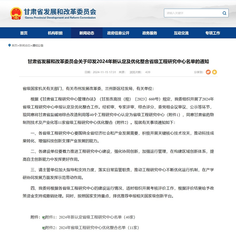 近日,省發(fā)展和改革委員會公布《2024年新認(rèn)定及優(yōu)化整合省級工程研究中心名單》,省水電設(shè)計院申報的“甘肅省水資源與現(xiàn)代水網(wǎng)”成功獲批立項“省級工程研究中心”,標(biāo)志著公司在水利工程科研平臺建設(shè)方面取得了重大突破。